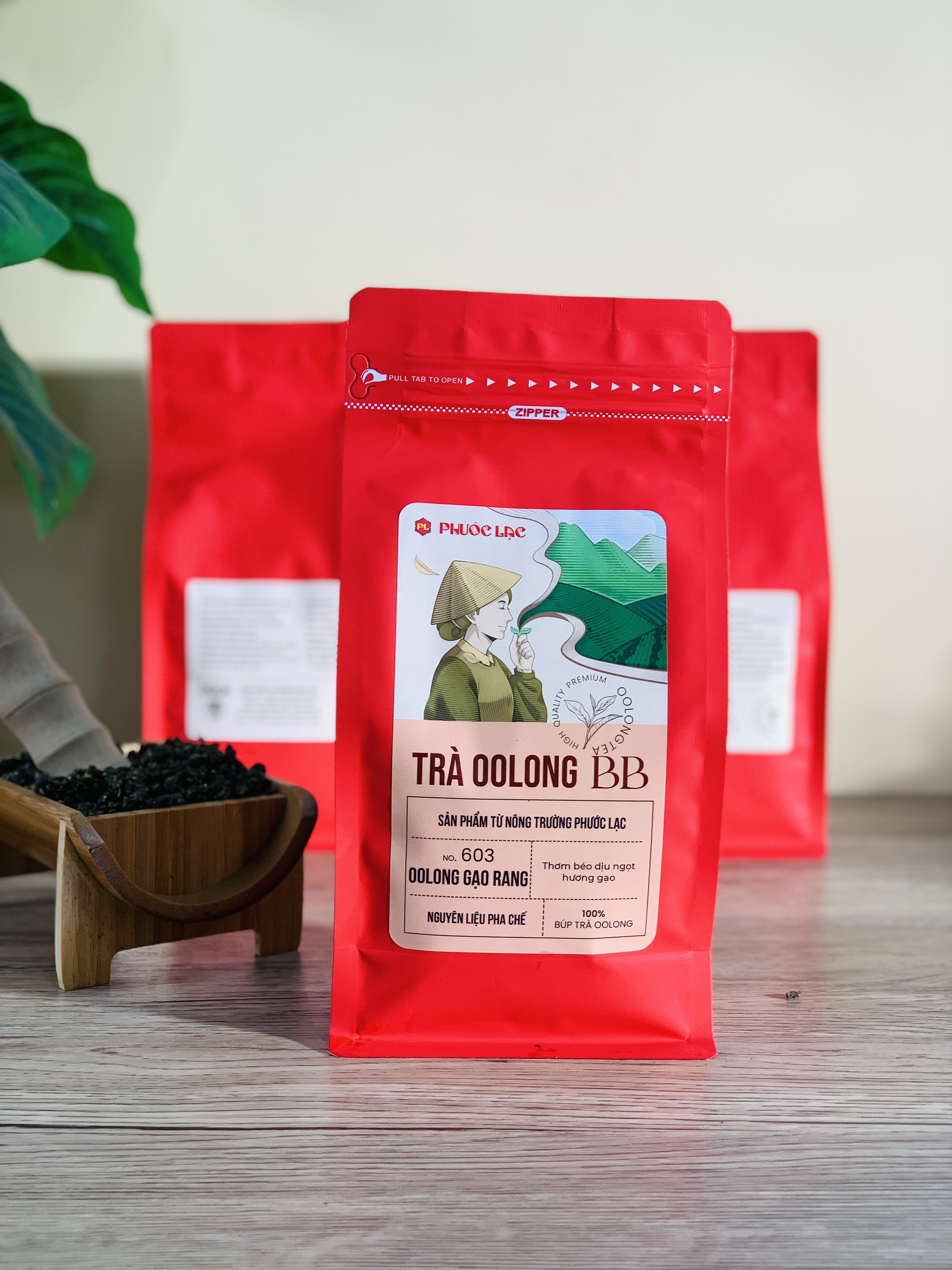 Trà Oolong BB gạo rang - một sản phẩm độc đáo từ những búp Oolong tươi được nuôi dưỡng tại nông trường trà Phước Lạc - đã trở thành một lựa chọn lý tưởng cho các chuỗi cửa hàng trà sữa với hương thơm đặc trưng của gạo rang kết hợp cùng vị ngọt dịu, tạo nên một nguyện liệu pha chế đặc trưng.